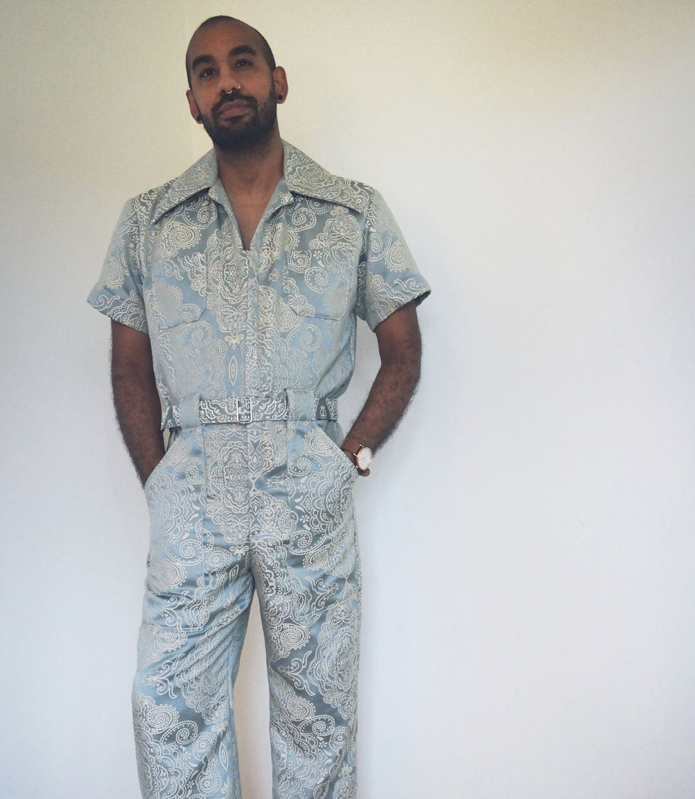 A juried upcycling exhibit at Bainbridge Arts & Crafts Gallery. This jumpsuit was created from a set of thrifted polyester curtains, and inspired by the infamous Parisian Night Suit from Freaks and Geeks.